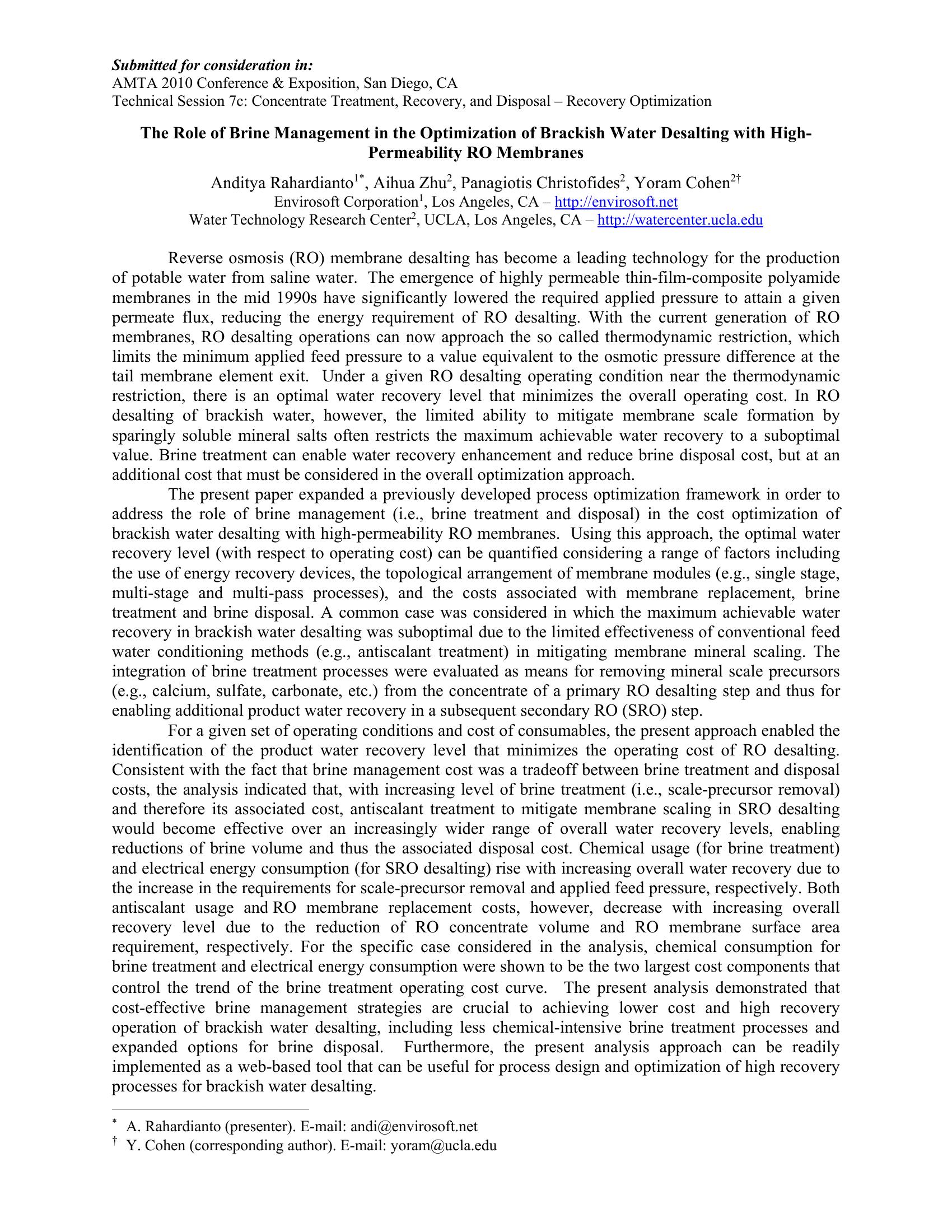 | Keywords | RO Desalination, Brine Treatment |