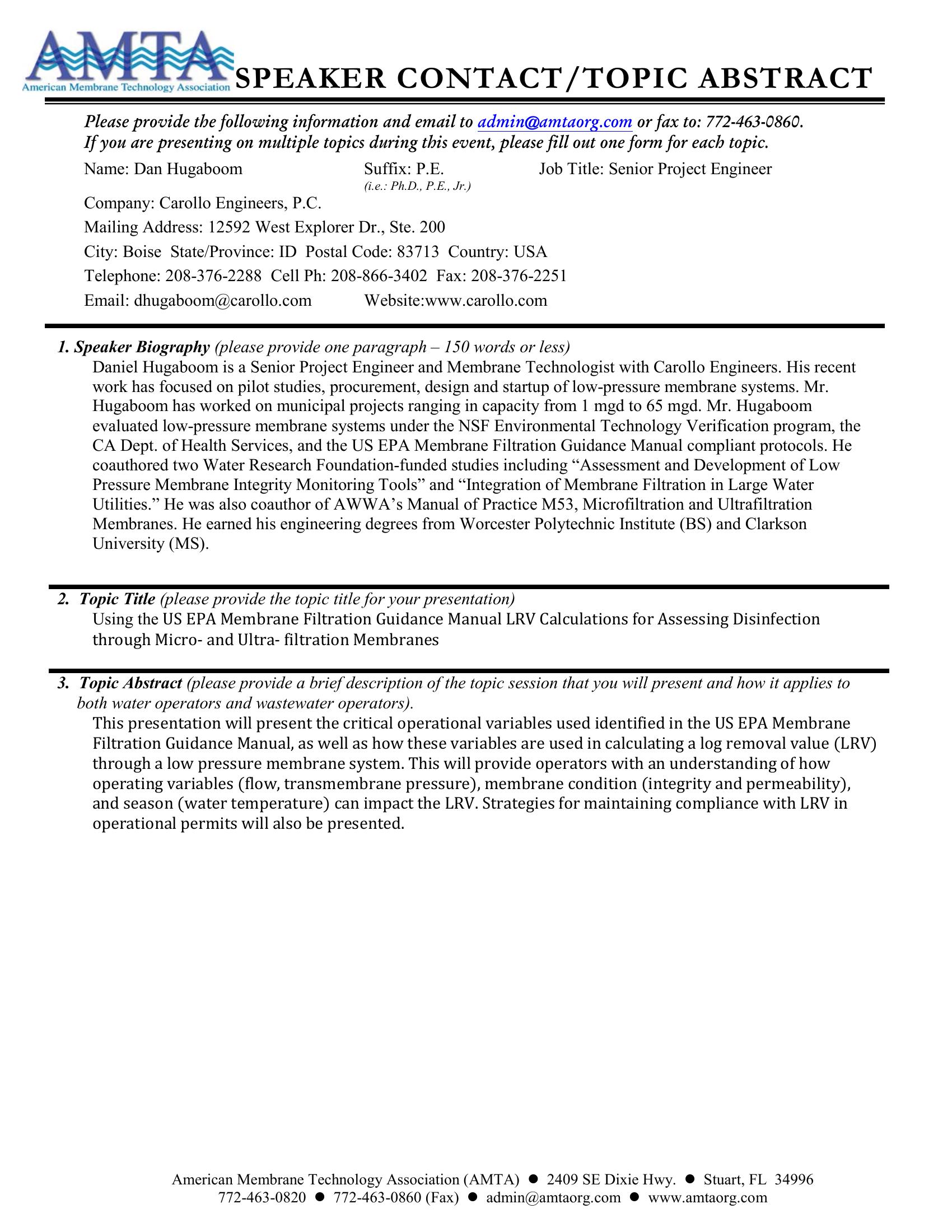 This presentation provides the critical operational variables identified in the US EPA Membrane Filtration Guidance Manual, and described how these variables are used in calculating a log removal value (LRV) through a low pressure membrane system. This will provide operators with an understanding of how operating variables (flow, transmembrane pressure), membrane condition (integrity and permeability), and season (water temperature) can impact the LRV.
