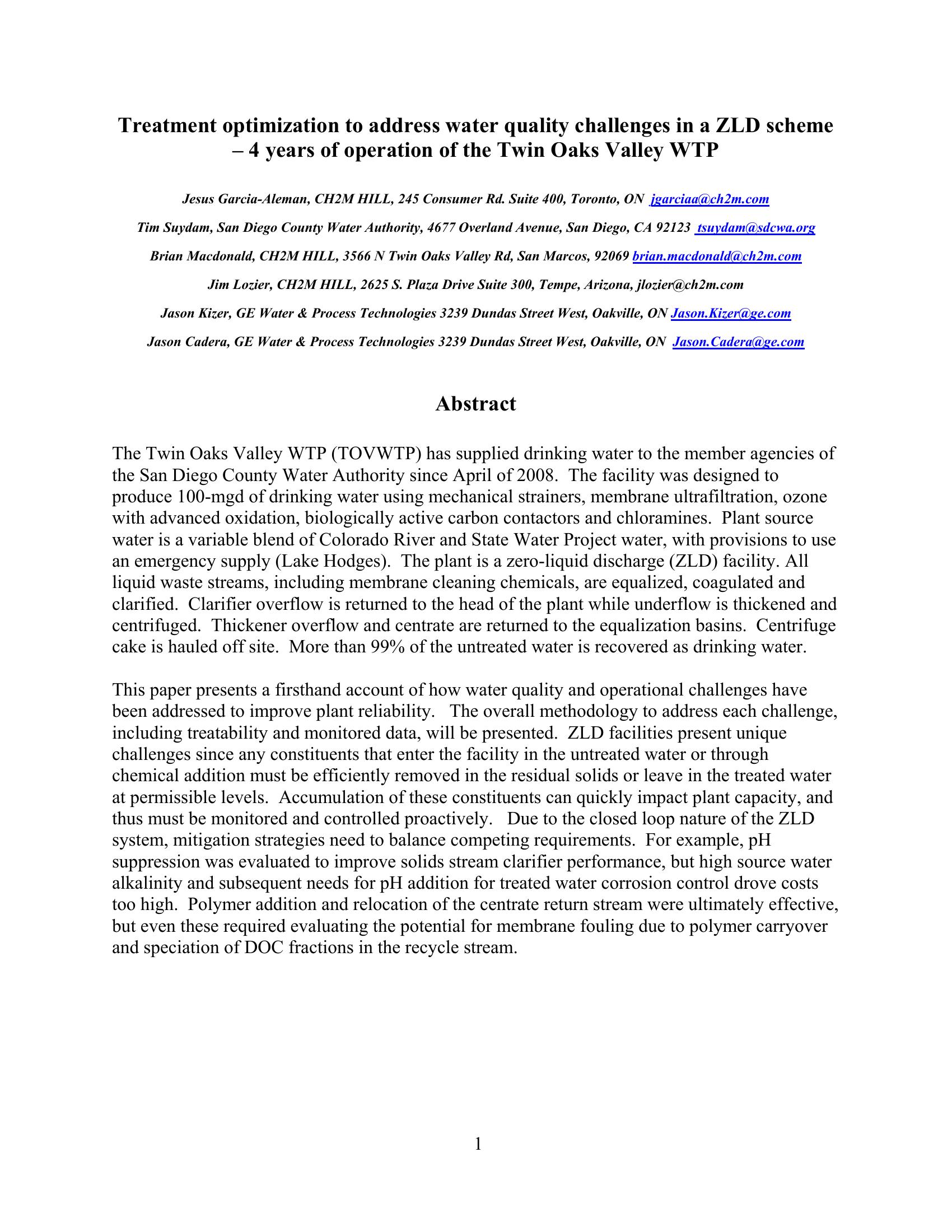 This paper presents a firsthand account of how water quality and operational challenges have been addressed to improve plant reliability. The overall methodology to address each challenge, including treatability and monitored data, will be presented. ZLD facilities present unique challenges since any constituents that enter the facility in the untreated water or through chemical addition must be efficiently removed in the residual solids or leave in the treated water at permissible levels. Accumulation of these constituents can quickly impact plant capacity, and thus must be monitored and controlled proactively. Due to the closed loop nature of the ZLD system, mitigation strategies need to balance competing requirements. For example, pH suppression was evaluated to improve solids stream clarifier performance, but high source water alkalinity and subsequent needs for pH addition for treated water corrosion control drove costs too high. Polymer addition and relocation of the centrate return stream were ultimately effective, but even these required evaluating the potential for membrane fouling due to polymer carryover and speciation of DOC fractions in the recycle stream.