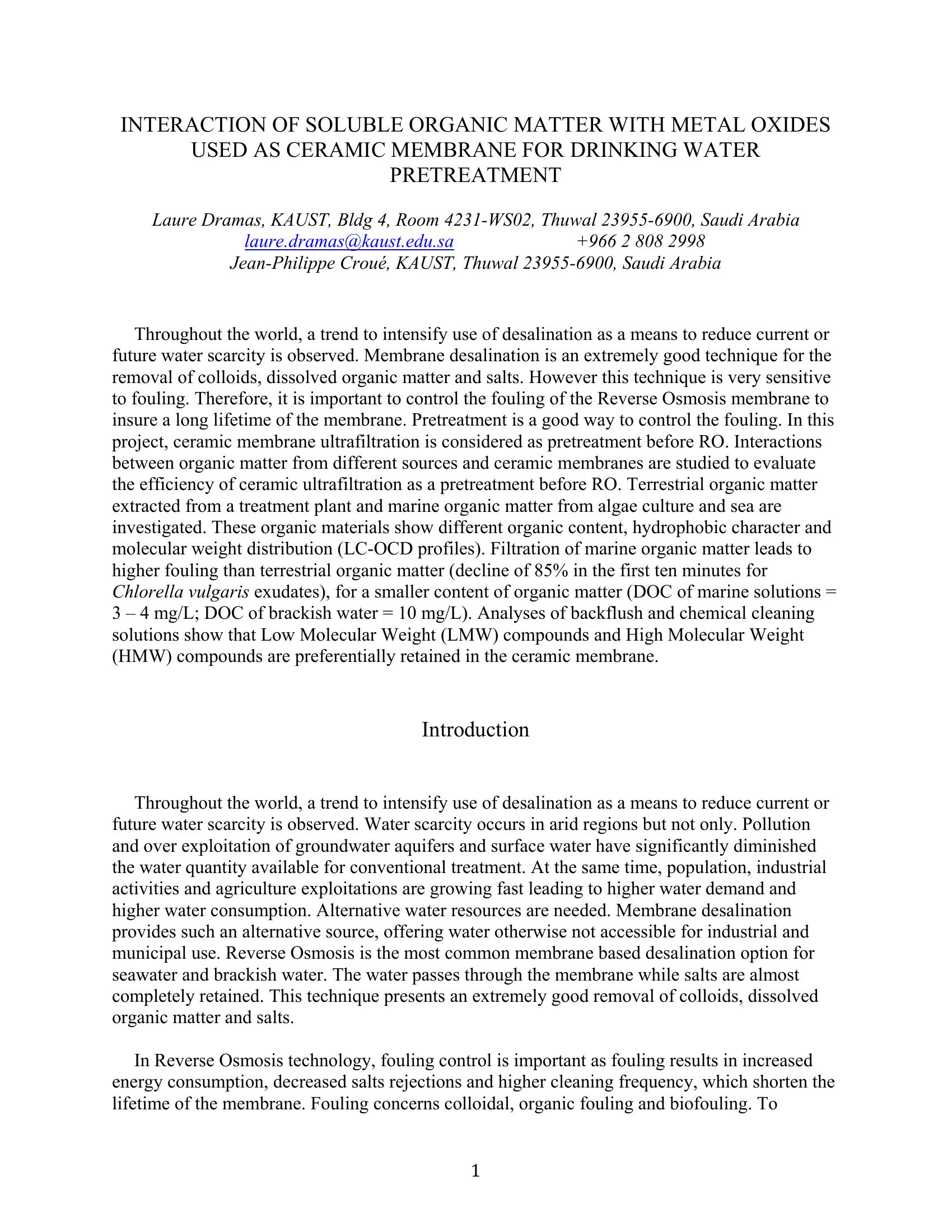 | Keywords | fouling, wastewater treatment |