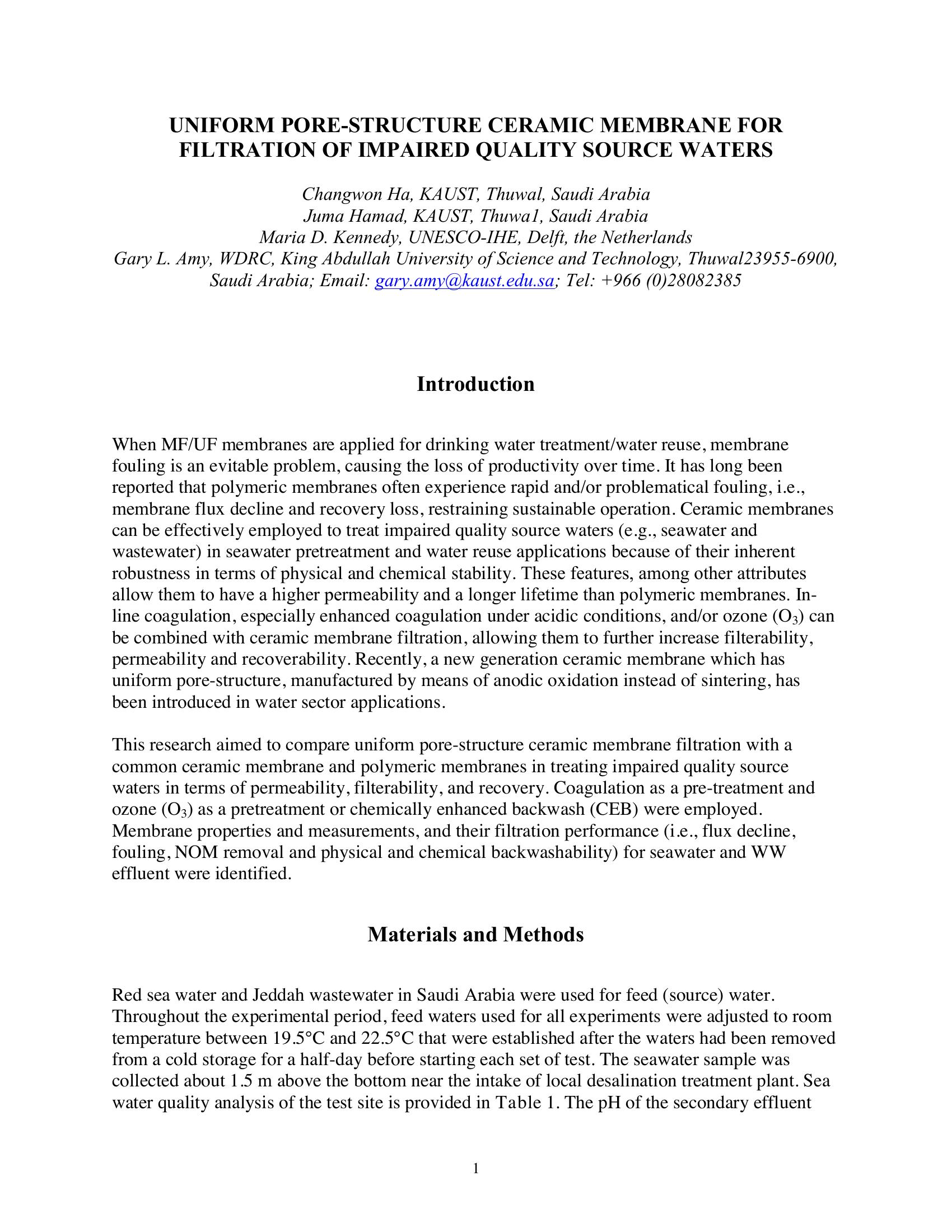 | Keywords | Water reuse, ceramic membrane, ozone, in-line coagulation, membrane recovery |
