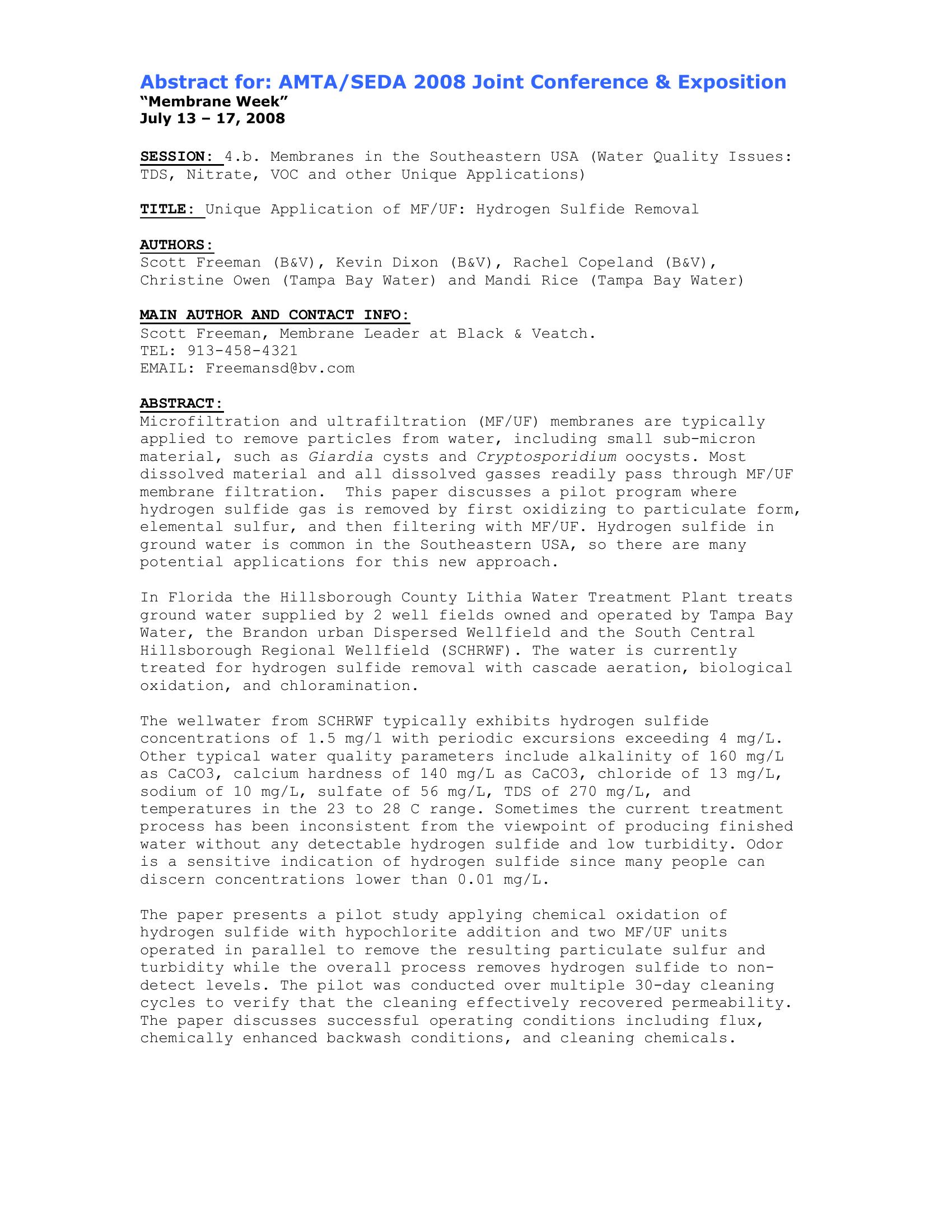 This paper discusses a pilot program where hydrogen sulfide gas is removed by first oxidizing to particulate form, elemental sulfur, and then filtering with MF/UF.