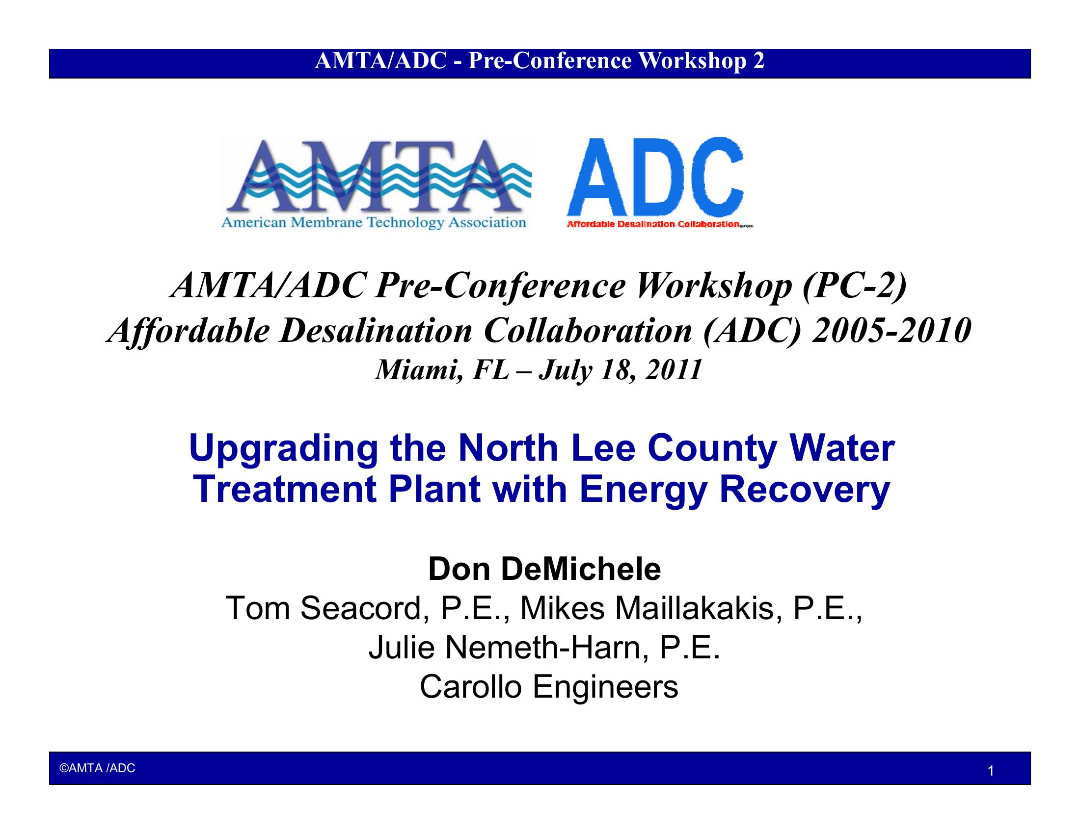Upgrading the North Lee County Water Treatment Plant with Energy Recovery