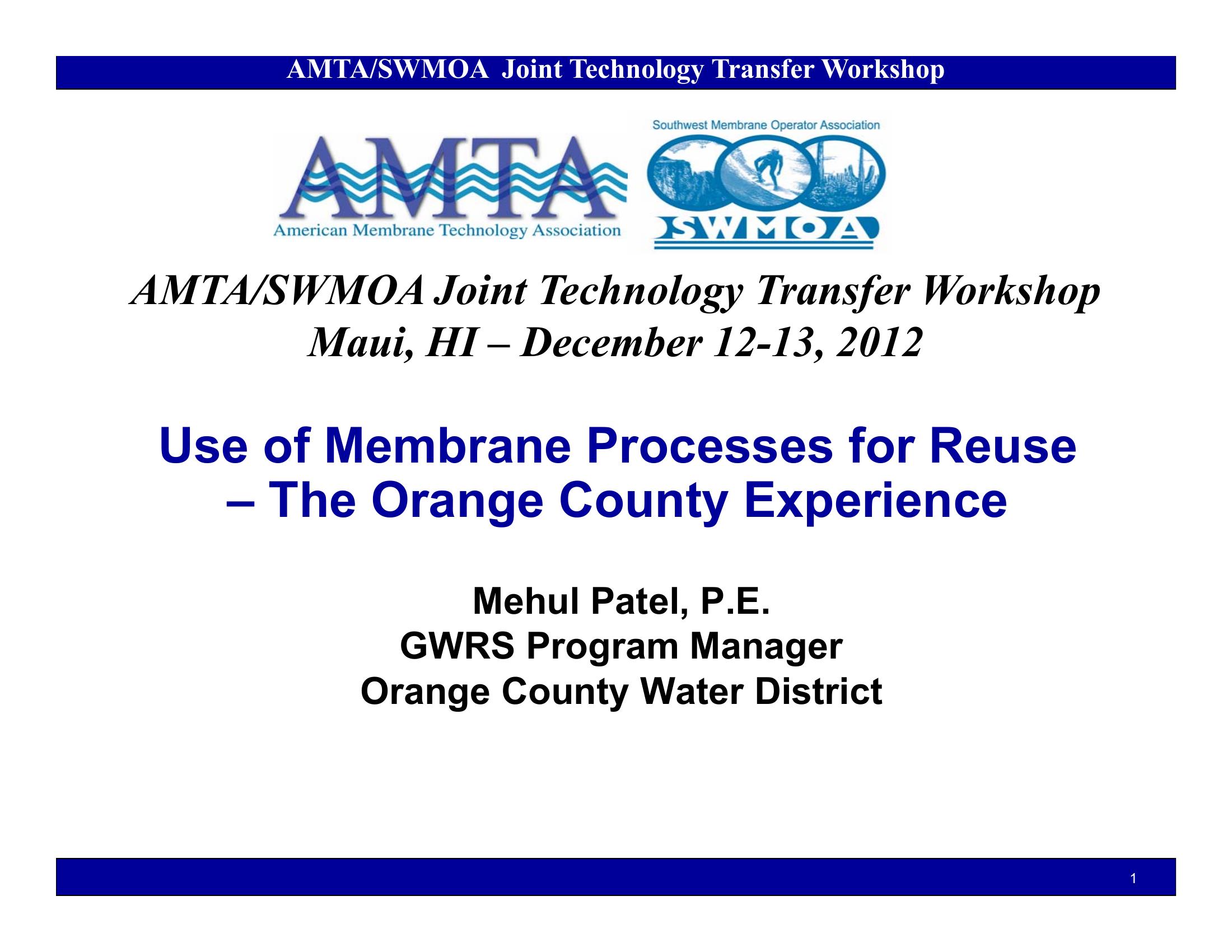 This PowerPoint presentaton describes that Orange County Water District use of membranes for indirect potable water reuse.