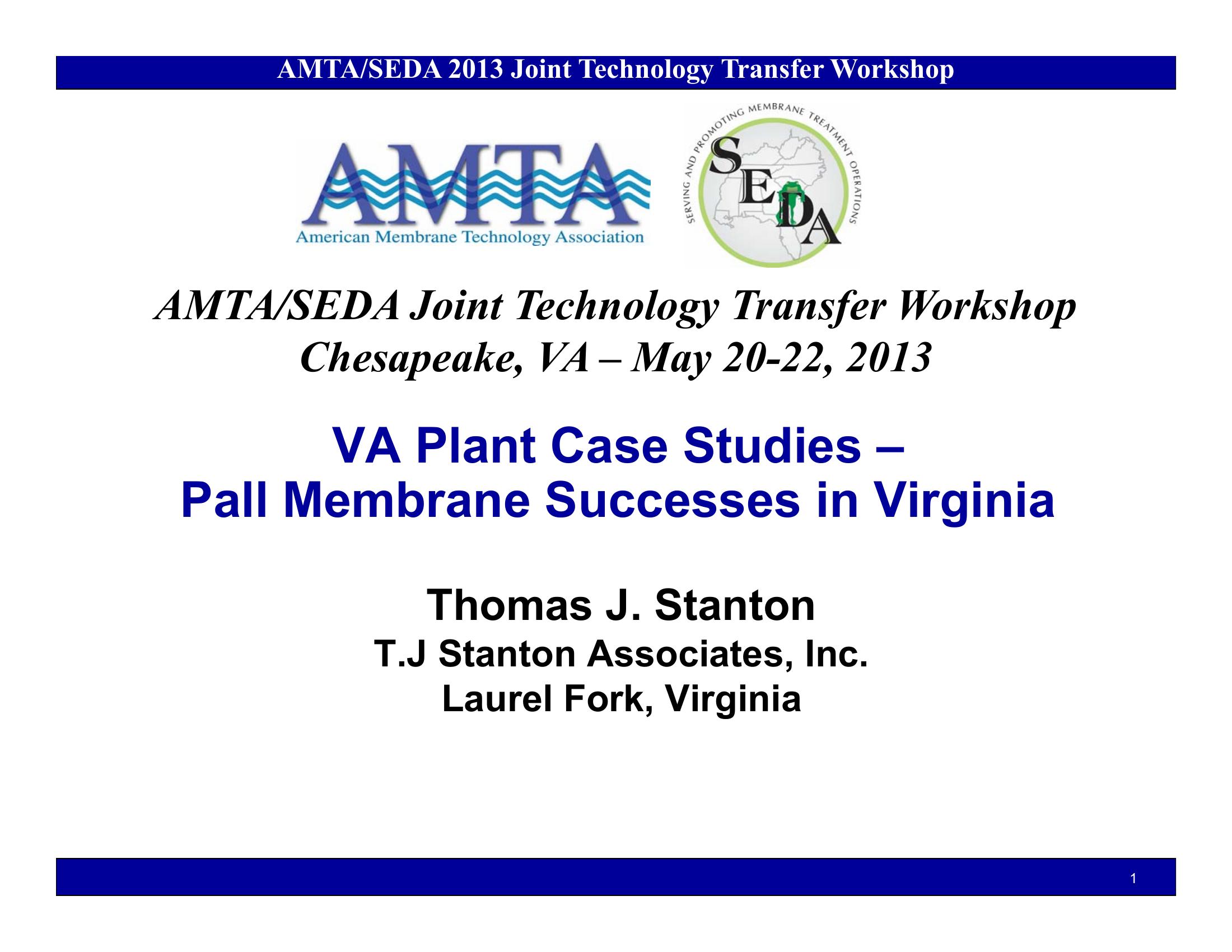 This PowerPoint presentation discusses the Virginia Pall Membrane plants case histories and activity