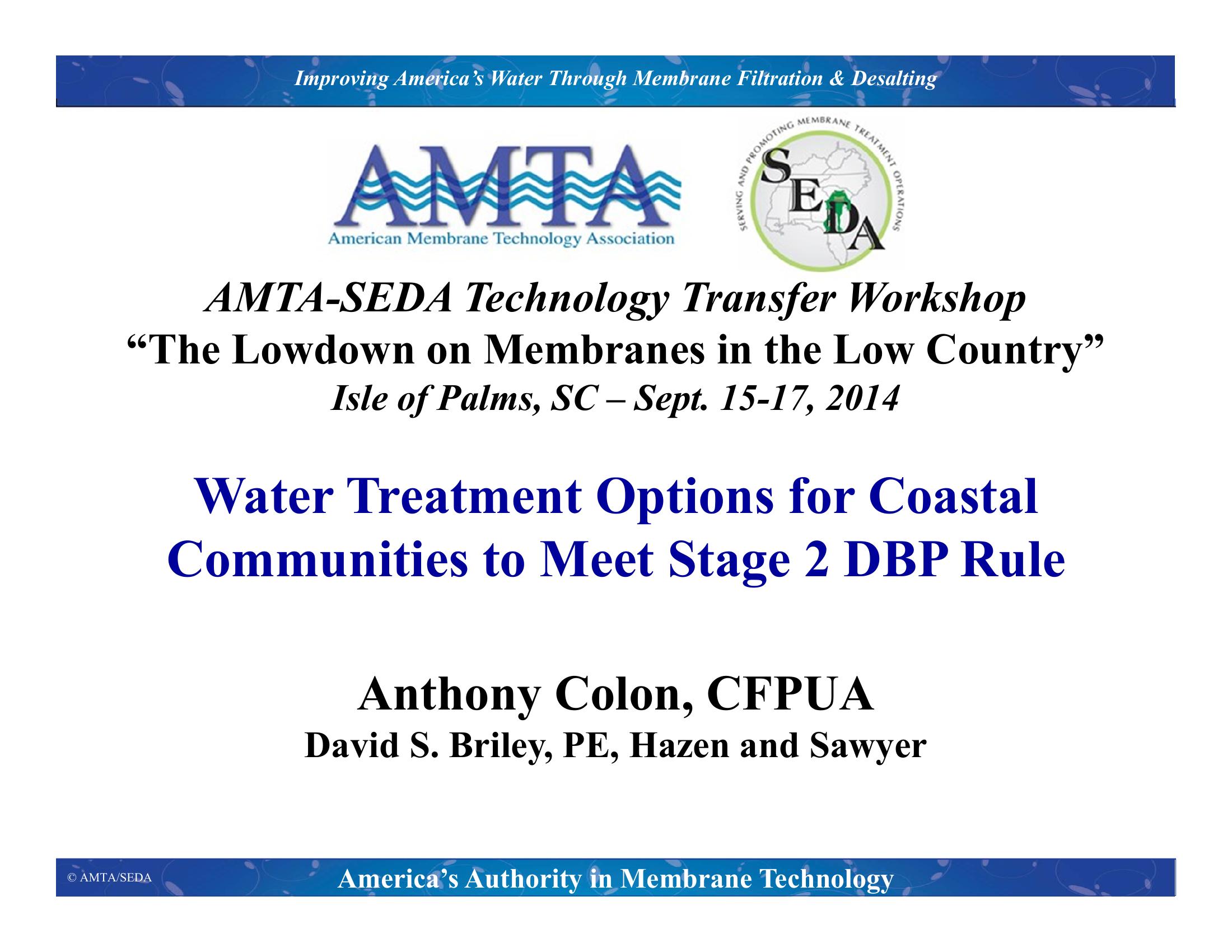 Water Treatment Options for Coastal Communities to Meet Stage 2 DBP Rule