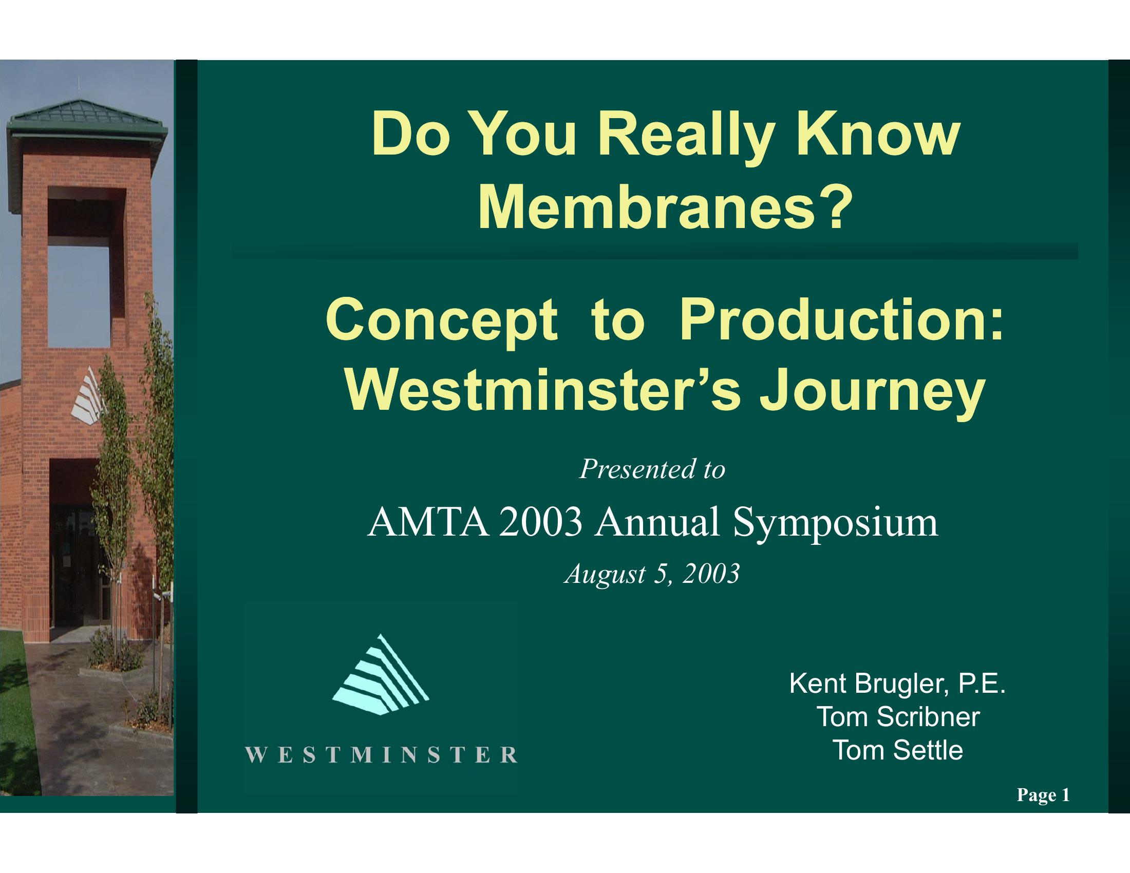 | Keywords | Westminster Colorado Microfiltration Facility |