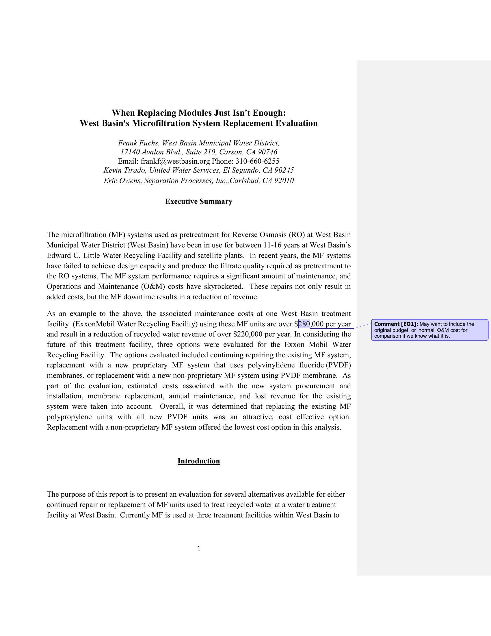 When Replacing Modules Just Isn?t Enough: West Basin?s Microfiltration System Replacement Evaluation